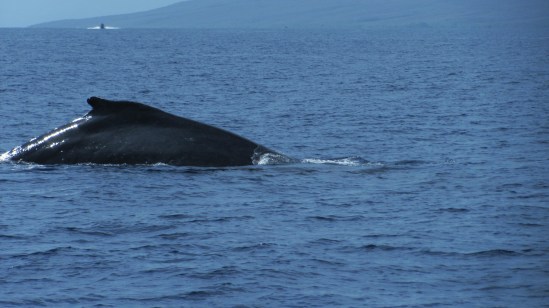 Mike came home from work (he Captains the “Scotch Mist”, a sail boat out of Lahaina) and told me this story: he was working the evening sail full of tourists, the “Champagne and Chocolates” sail. It’s whale season here (December through March) and a mama whale came right up to the back of the boat. Mike has been on the water his whole life, and a Captain for 22 years. He said she was the biggest whale he’d ever seen, mainly because of her girth. She was about fifty feet long and twelve feet wide. He was blown away by her sheer size and figured she must be reeally old.