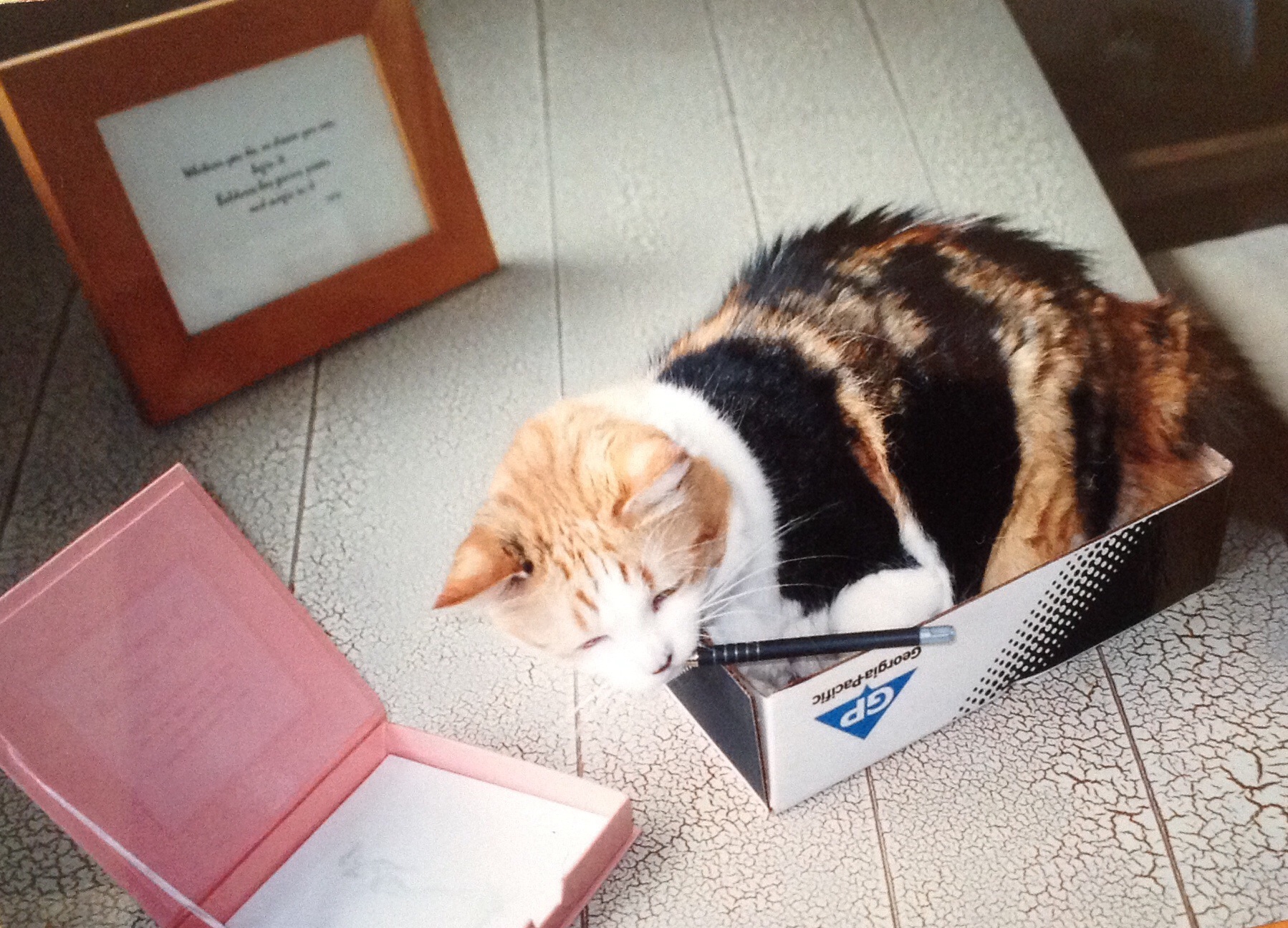I’ve had lots of cats. I had a grumpy cat before Grumpy Cat was famous. I had a tortoiseshell who was so emotionally fragile that she hid under my bed for eight hours every time the garbage truck came down the street. Then there was the male cat who was self – feeding. He could open a cabinet door by himself and tip his food container over. This never failed to amuse my mother.