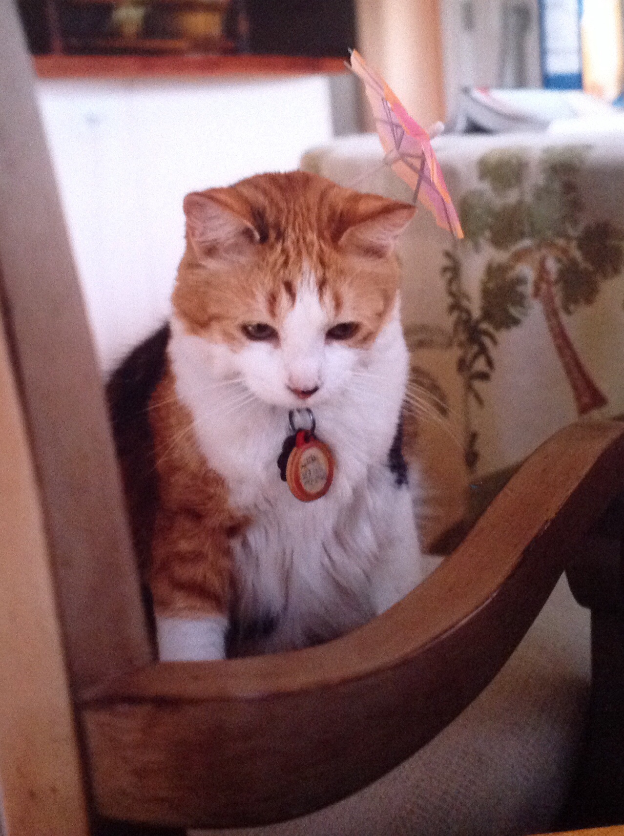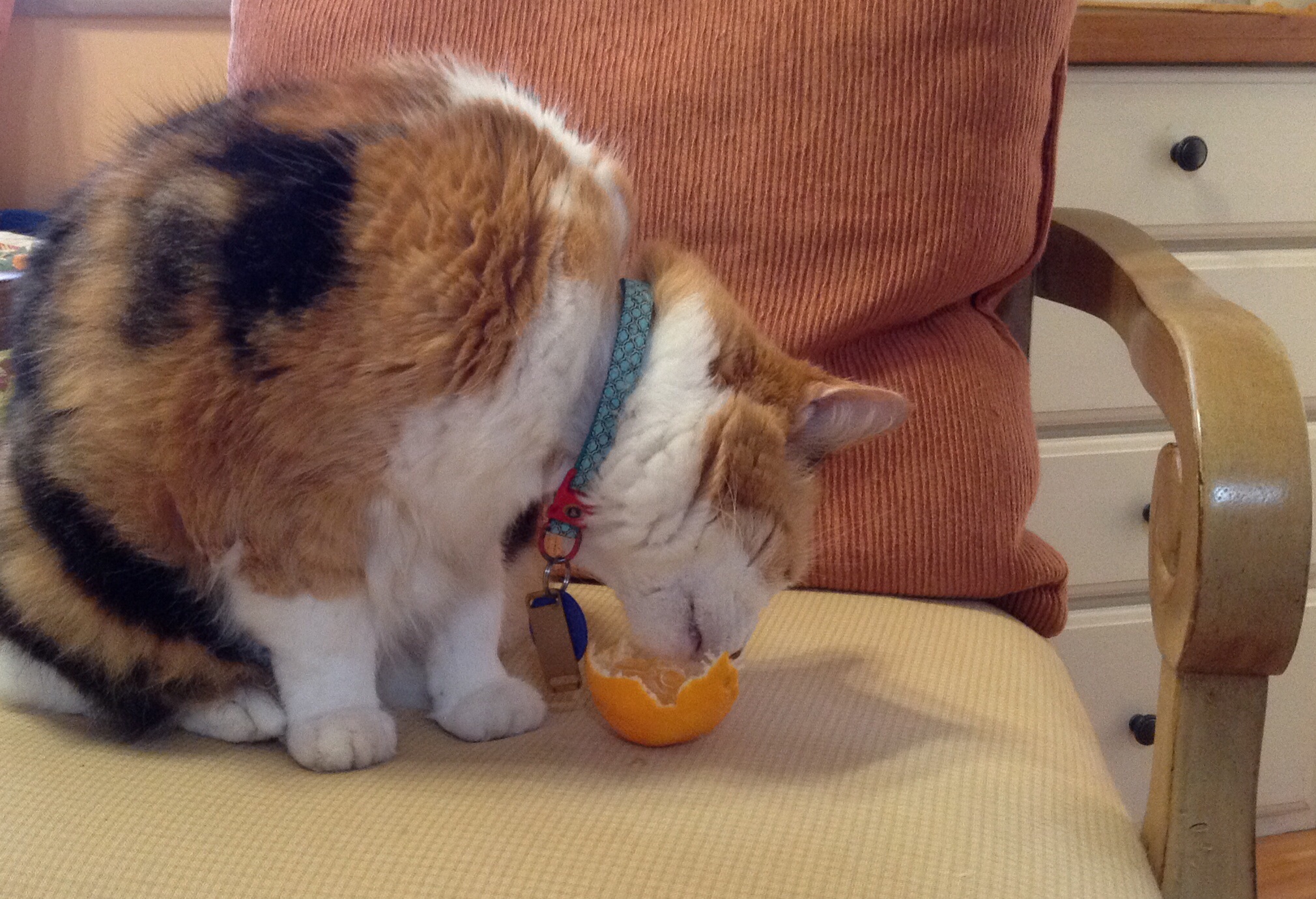 She is The Cat Who Eats Anything. While her first loves are tropical fruits (bananas and papayas from our yard – I just realized she’s probably smart enough to know organic when she tastes it), she has never turned anything down: champagne, arugula, it’s all on the menu because she has a very refined palate.