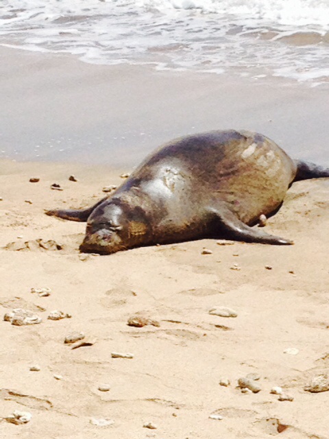So here is a look at Mike’s day. First up, the Hawaiian monk seal on the beach in front of his friend Barry’s house, where he often stops off before work: